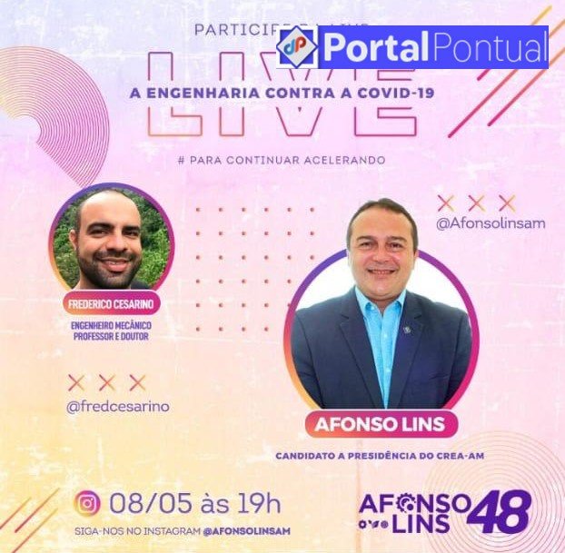 Nesta sexta-feira, a partir de 19h, o Engenheiro Civil Afonso Lins irá bater um papo com o Engenheiro Mecânico e professor, Frederico Cesarino, a conversa será transmitida através de uma live no Instagram pessoal de Afonso Lins (@afonsolinsam) .