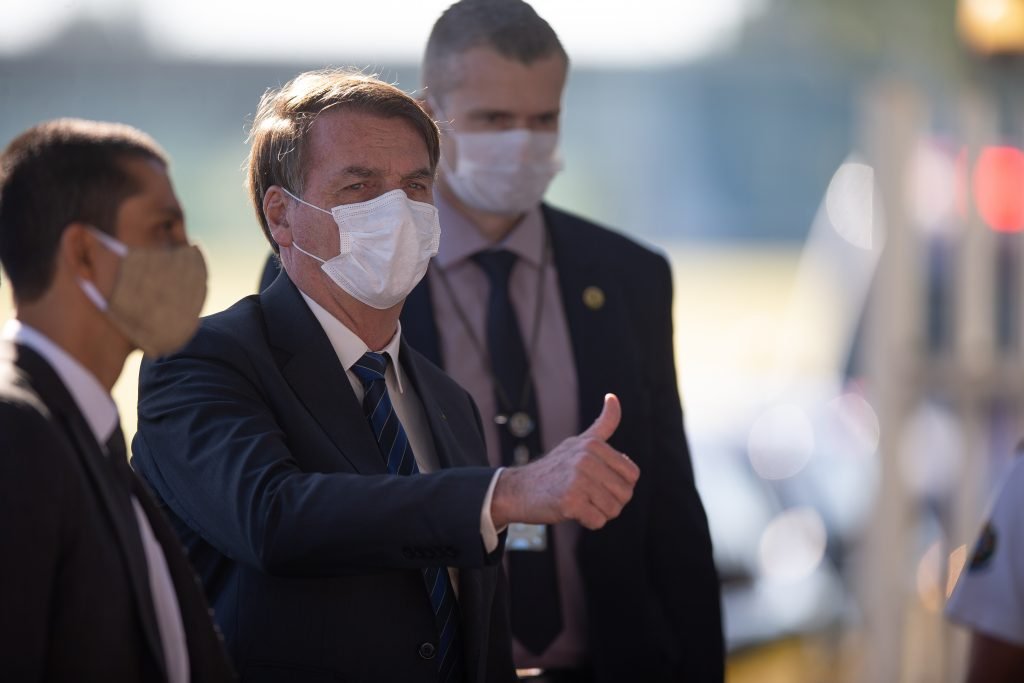 BRASÍLIA, DF, 11.05.2020 – JAIR-BOLSONARO-DF – Usando máscara, o presidente Jair Bolsonaro fala com apoiadores ao sair do Palácio da Alvorada, em Brasília, na manhã desta segunda-feira (11). (Foto: Pedro Ladeira/Folhapress)