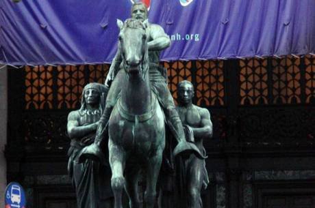 Há poucos dias, a cidade de Nova York anunciou que irá remover uma estátua de Theodore Roosevelt, que presidiu o país de 1901 a 1909, da porta do Museu de História Natural. Na imagem, ele aparece montado em um cavalo, ao lado de um nativo americano e um africano, que estão a pé.