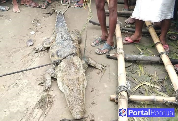 Moradores de uma aldeia na cidade de Midania, no estado de Uttar Pradesh, no norte da Índia, sequestraram um crocodilo de dois metros durante um protesto.
