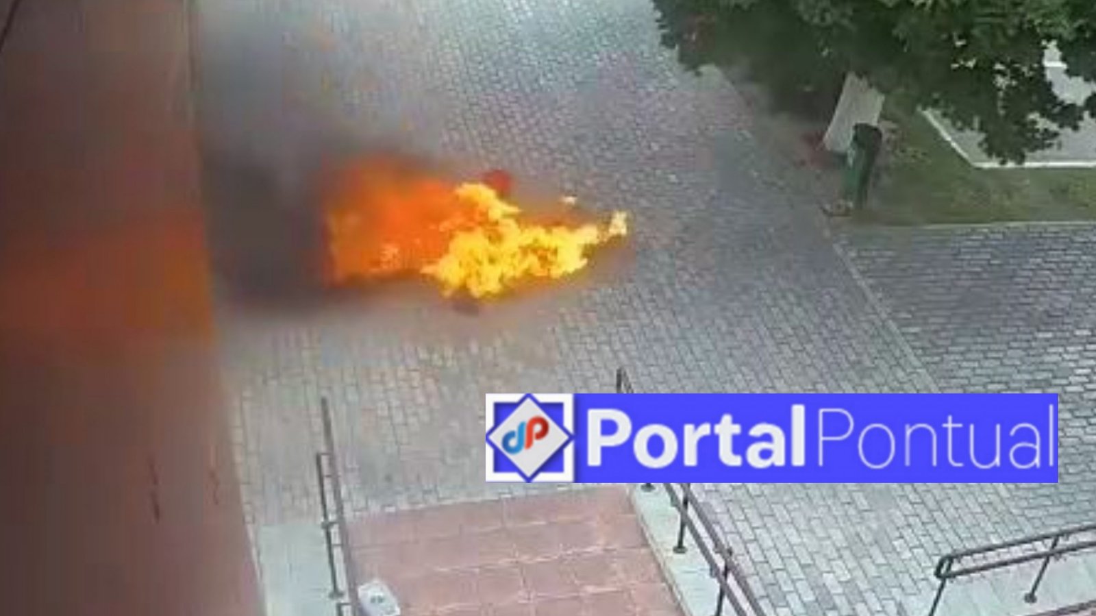 Um homem até o momento não identificado, foi flagrado ateando fogo no próprio corpo.