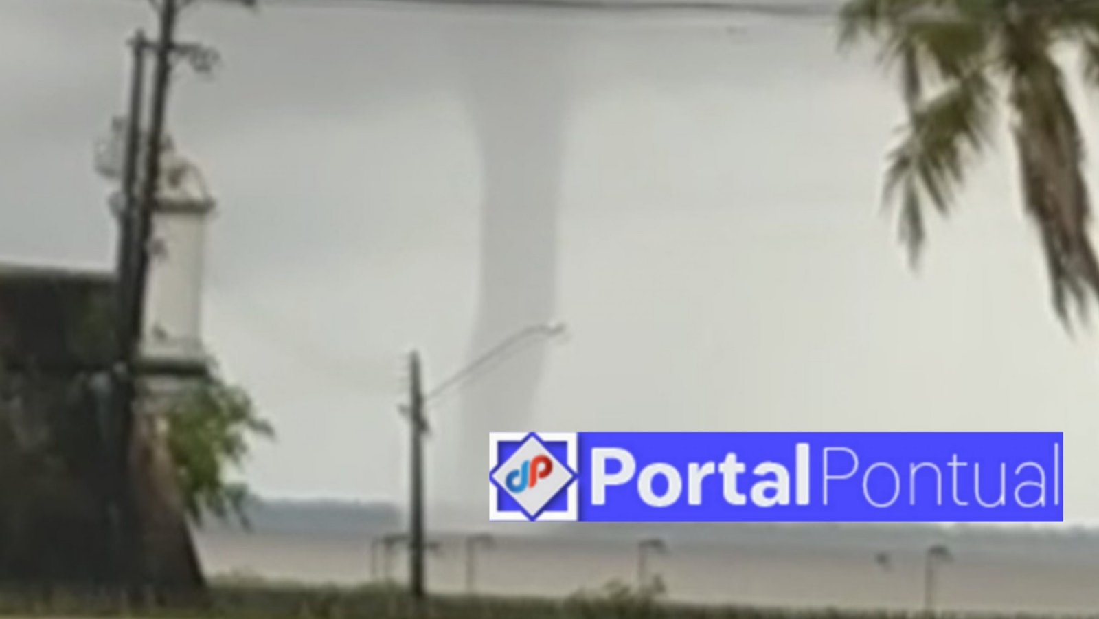 Uma tromba d’água se formou no Rio Amazonas e foi registrada por dezenas de pessoas em Macapá, no início da tarde de ontem, quinta-feira (26).