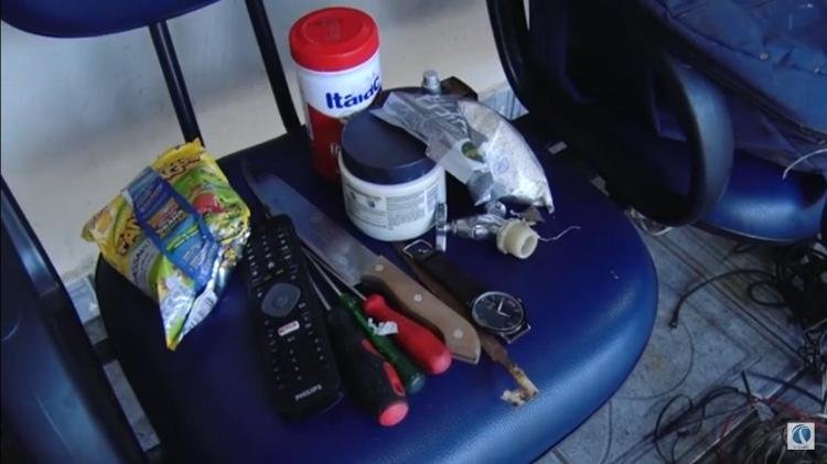 Até o momento o suspeito não foi localizado e deixou para trás uma mochila com um pacote de salgadinhos, facas, um pote de leite, um controle remoto e algumas ferramentas.