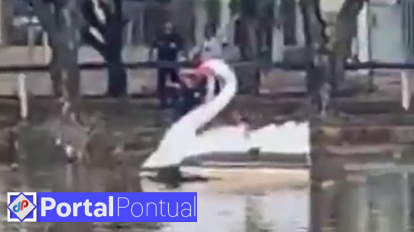 Após correr até o parque e ser interceptado por um popular, o homem pulou no cisne. Percebendo que estava cercado por guardas e que seria preso caso se aproximasse da margem do lago, o homem resolveu pular na água e entrar na tubulação de esgoto.
