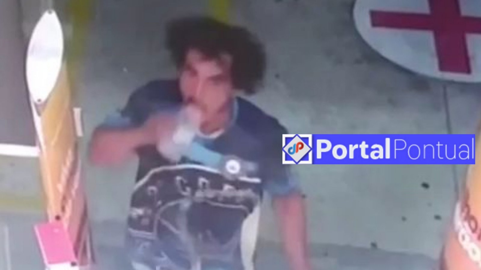 As imagens registradas na última quarta-feira (3), mostram o homem pegando o vidro, abrindo o produto e tomando todo o conteúdo do frasco.