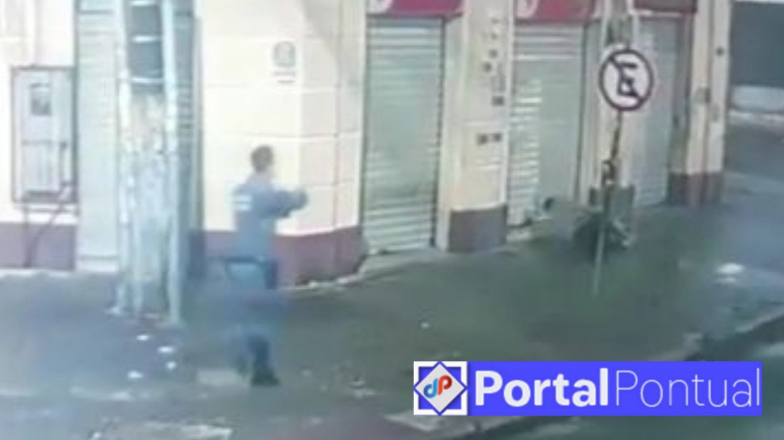 Um vídeo registrado na última sexta-feira (11), mostra um ladrão trapalham despencando de uma janela e sendo preso pela polícia.