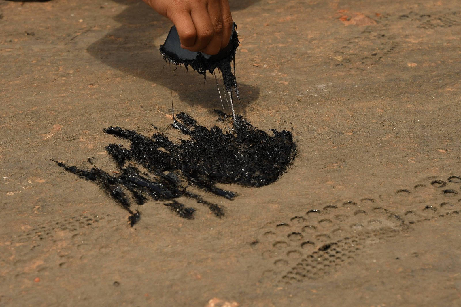 O pavimento usado derrete com o forte calor e gruda nos calçados dos moradores e, quando ele se quebra em pedaços, começa a esfarelar.