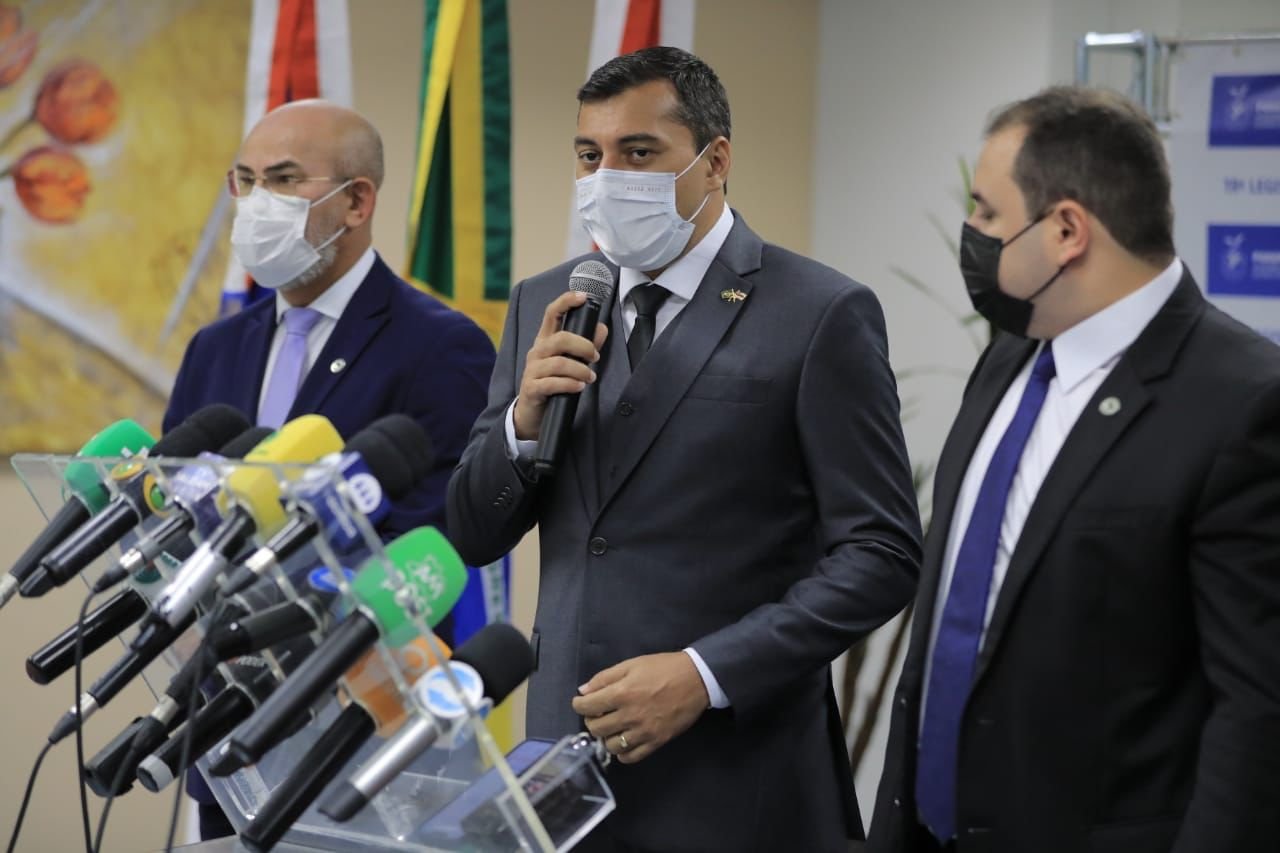 O governador Wilson Lima destacou, nesta terça-feira (01/02), as prioridades do Governo do Amazonas para este ano durante entrevista coletiva após a leitura da mensagem governamental que abriu o ano legislativo, no plenário da Assembleia Legislativa do Estado do Amazonas (Aleam).