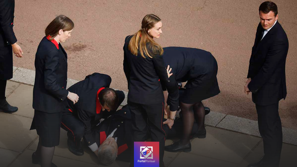 Já o funcionário real que passou mal, desmaiou depois de prestar seus respeitos durante o funeral de Estado da rainha Elizabeth II. Nos registros feitos do momento, é possível ver o homem de cabelos grisalhos caído ao chão, enquanto é socorrido por outros colegas de trabalho.