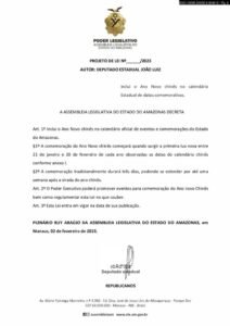 O Projeto de Lei 96/2023 inclui o Ano Novo chinês no calendário estadual de datas comemorativas. A celebração será feita entre os dias 21 de janeiro e 20 de fevereiro. A proposta é de autoria do deputado João Luiz (Republicanos) e cumpre prazo regimental na Assembleia Legislativa do Estado do Amazonas (Aleam).